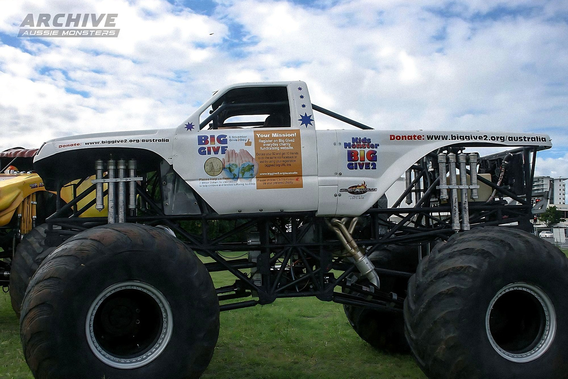 Big Give was the direct result of a partnership between Monster Truck Promotions Australia and the 'Big Give' charity. The identity ran temporarily on the original Crusty Demons chassis and made its debut on the Sunshine Coast in June of 2014. The truck would later become Flash.