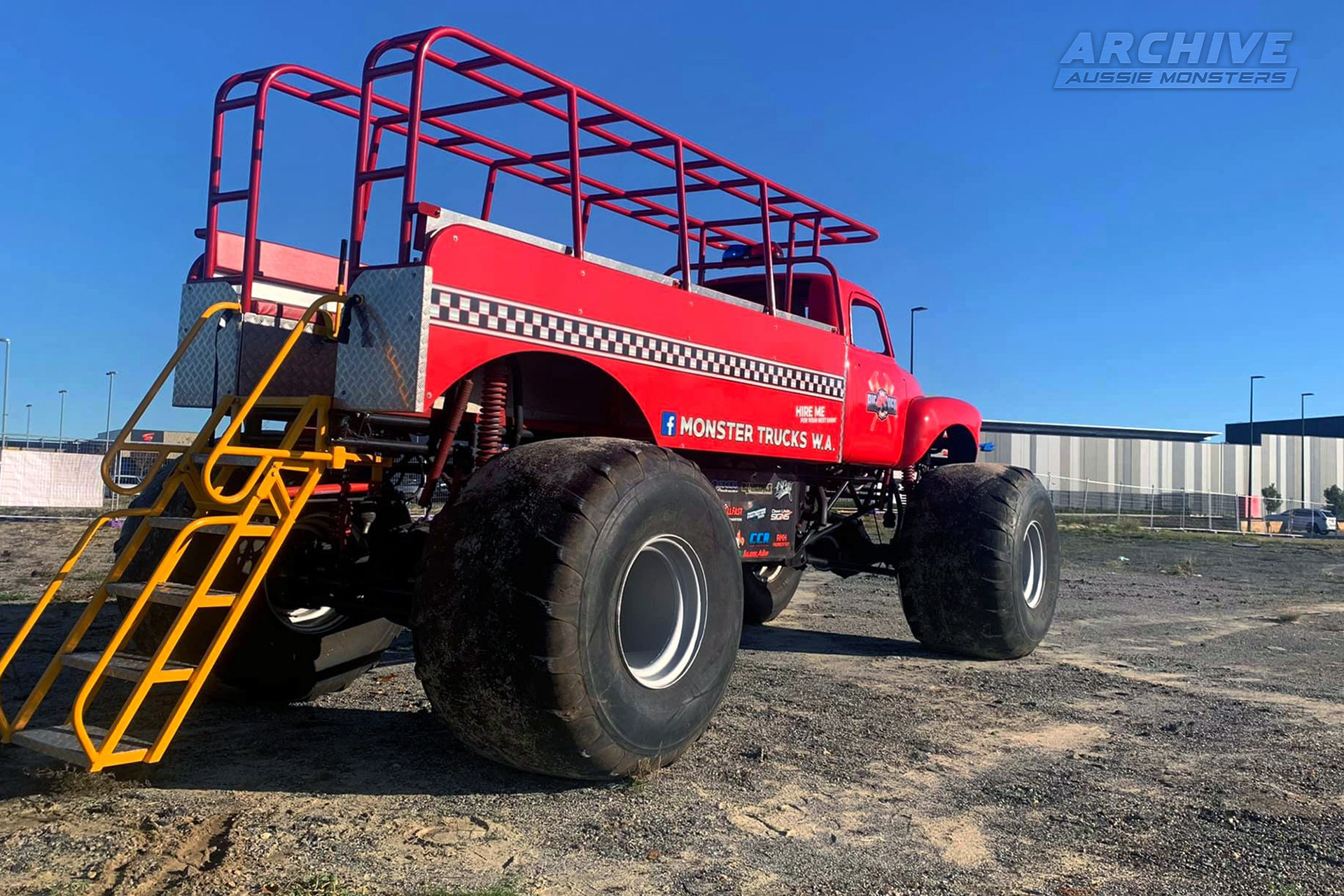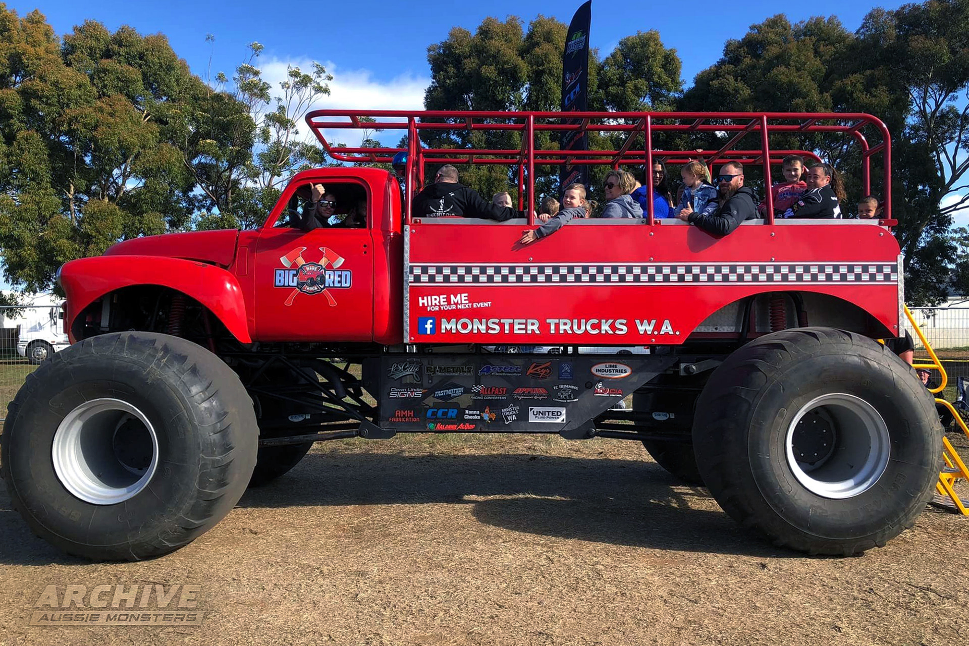 Big Red is a custom-built ride truck constructed in-house by Monster Trucks WA. The truck's design is based on a vintage 1954 Chevrolet fire truck and is the only Australian-built ride truck in operation.
