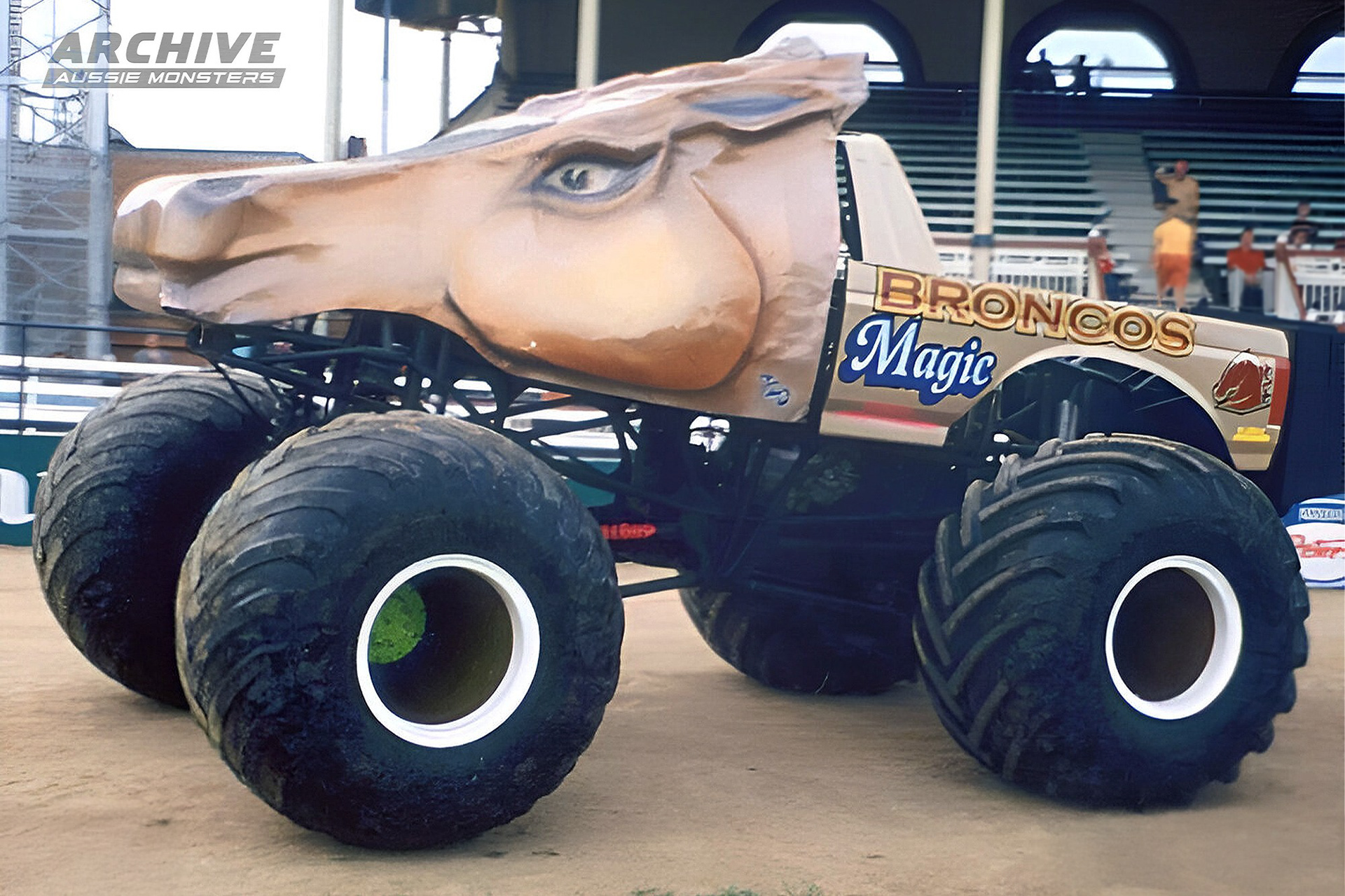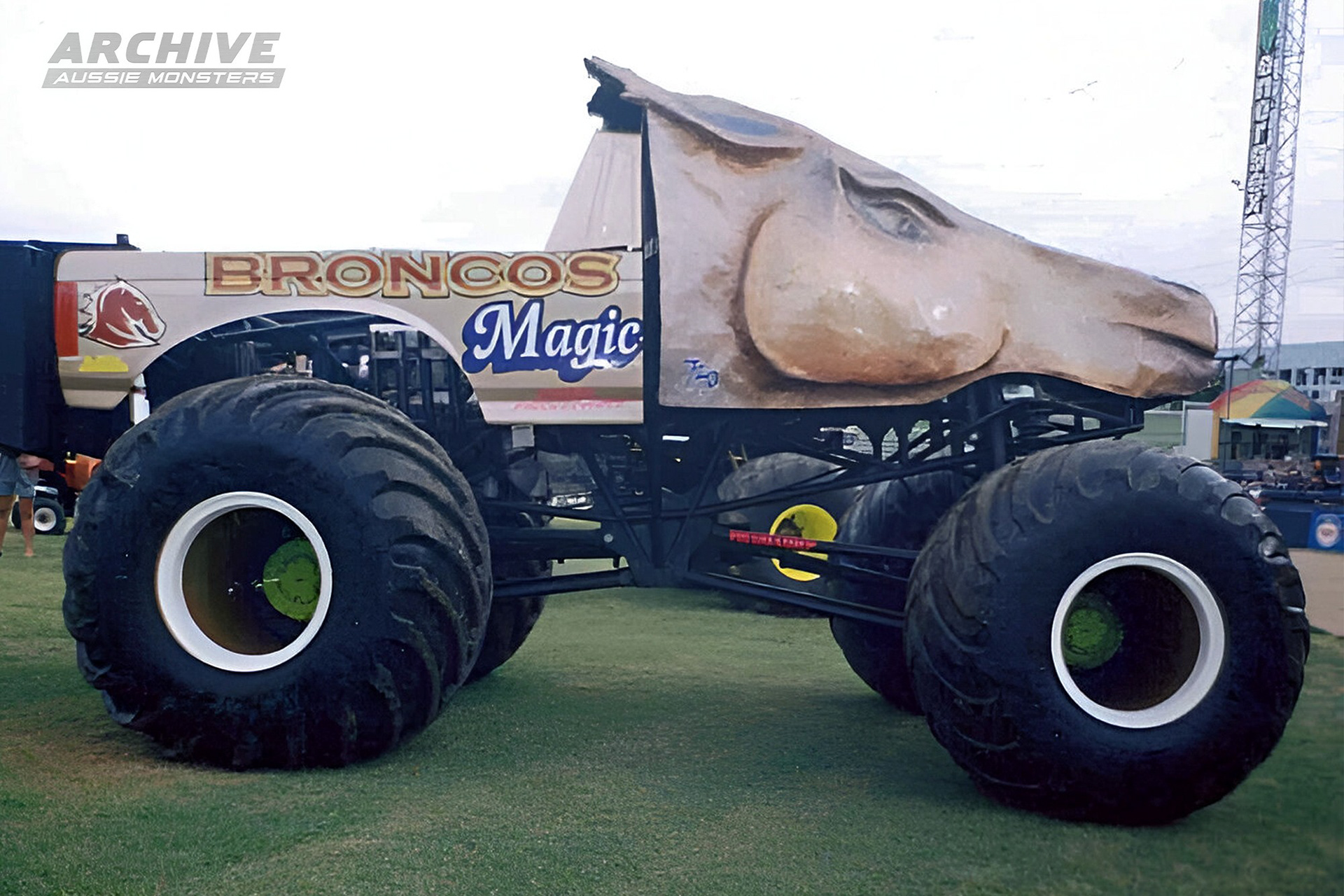 Broncos Magic was the first 3D concept truck in the country and was constructed by Lindsay Houston and the team at LDI Kustoms. The NRL’s Brisbane Broncos officially sanctioned the truck. It was heavily modified, with the addition of a water tank at the truck's rear, allowing it to perform wheel stands on command.