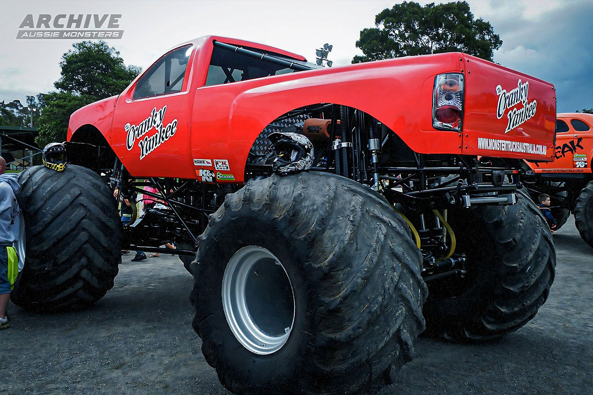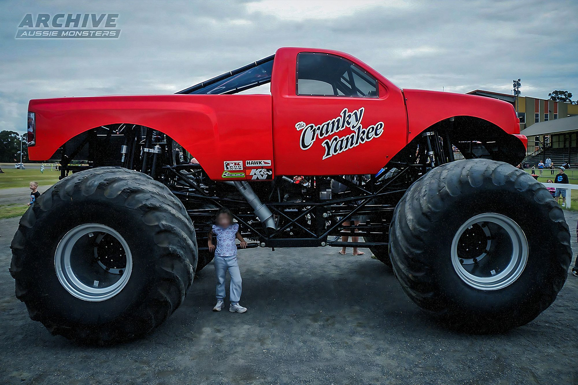 Cranky Yankee was one of the first trucks to debut (see debut design on bottom two images) under Monster Events while the team was previously running as 'Extreme Monster Trucks Australia'. The identity ran consistently until late 2013, when it was converted into Revenge. The identity would return as a backup truck between 2021 and 2023; the chassis currently runs as Blazed.