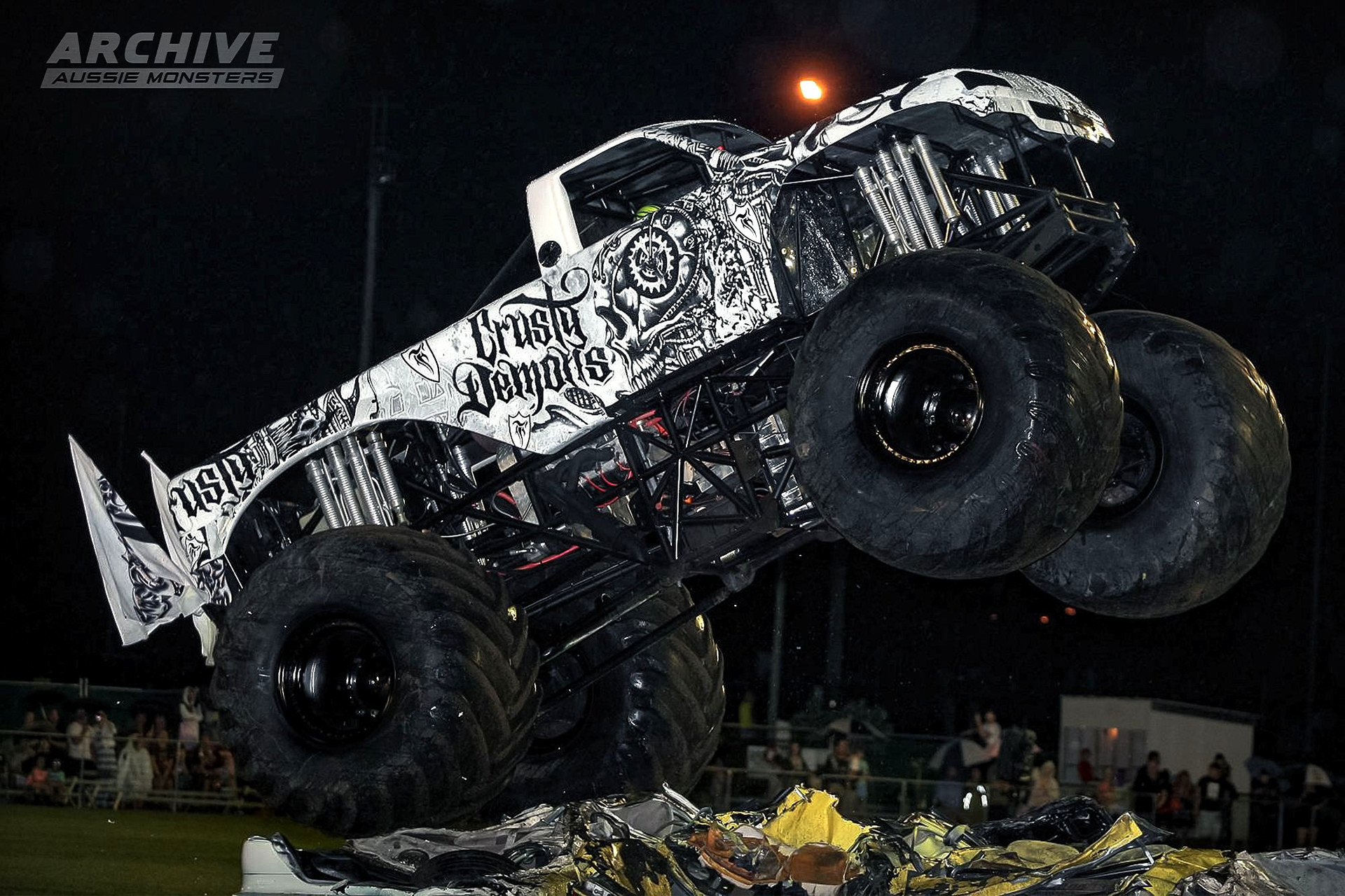 Crusty Demons was owned by Monster Truck Promotions Australia and was sponsored by the freestyle motorcyclists group of the same name. It made its debut by driving out of a large Crusty Demons-themed box and was driven by various freestyle motocross drivers throughout its almost one-year run.