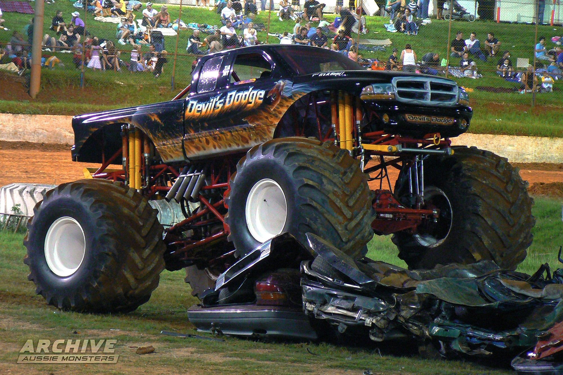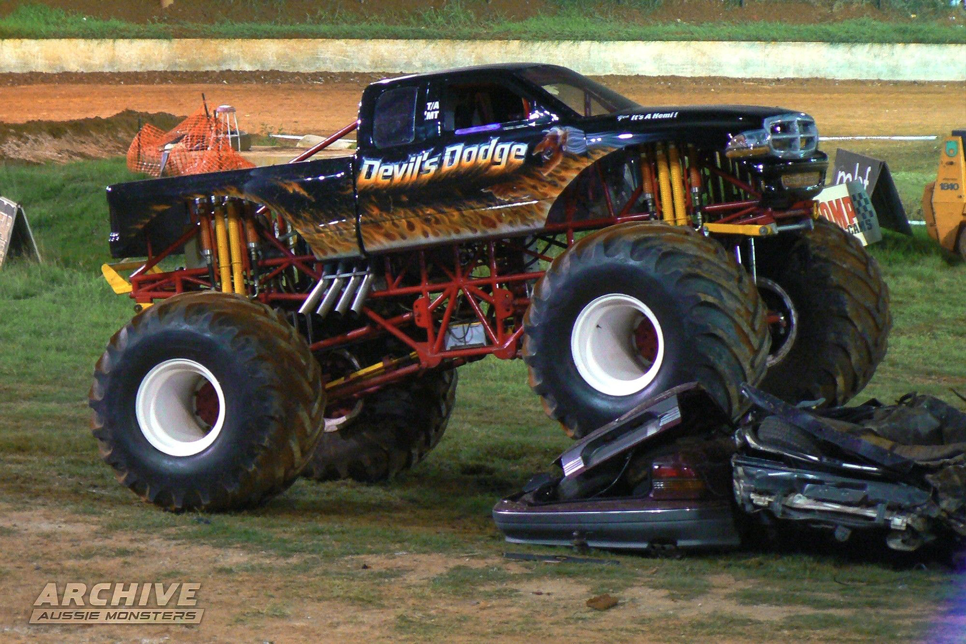 The first Devil's Dodge was imported directly from Larry Birch III out of the U.S and made its debut performance just two days after clearing customs. It is one of the few trucks to run a Dodge Dakota body and was notorious for performing sky wheelies due to its extremely high horsepower. The engine's extensive power was unfortunately unable to be maintained due to the lack of parts in the country, and as a result, it was later swapped out for a big block with significantly less power. The truck went on to become the second Outback Thunda, while the body was re-purposed on the second Devil's Dodge.