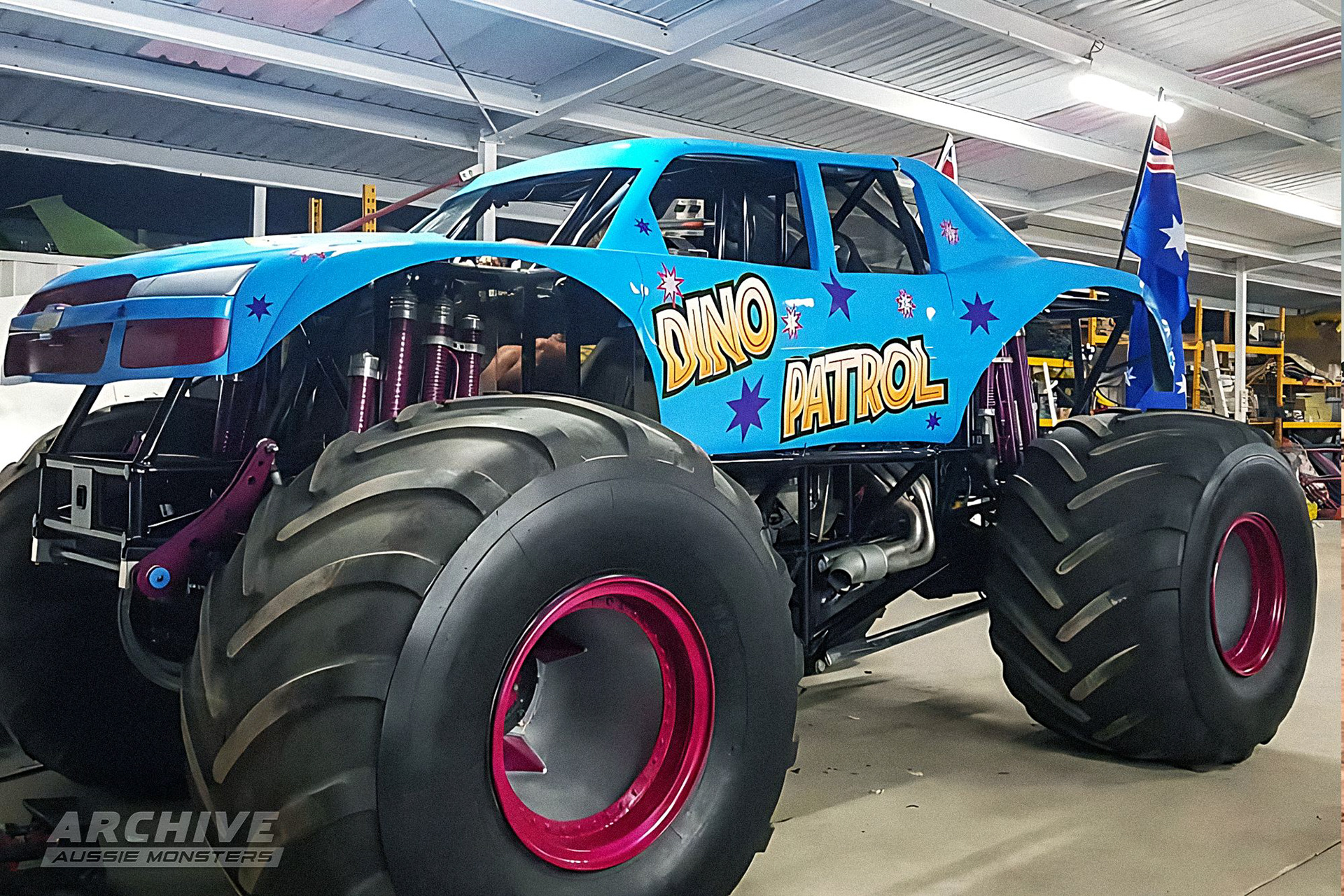 Dino Patrol made its debut at the Extreme Sports Festival in Abu Dhabi and was driven by Kreg Christensen for the event, before being transported back to Australia. It is one of only a few trucks to run this body and made limited appearances throughout its short run, briefly reappearing with a new blue paint job in July of 2020 prior to being converted into the current Outback Thunda.