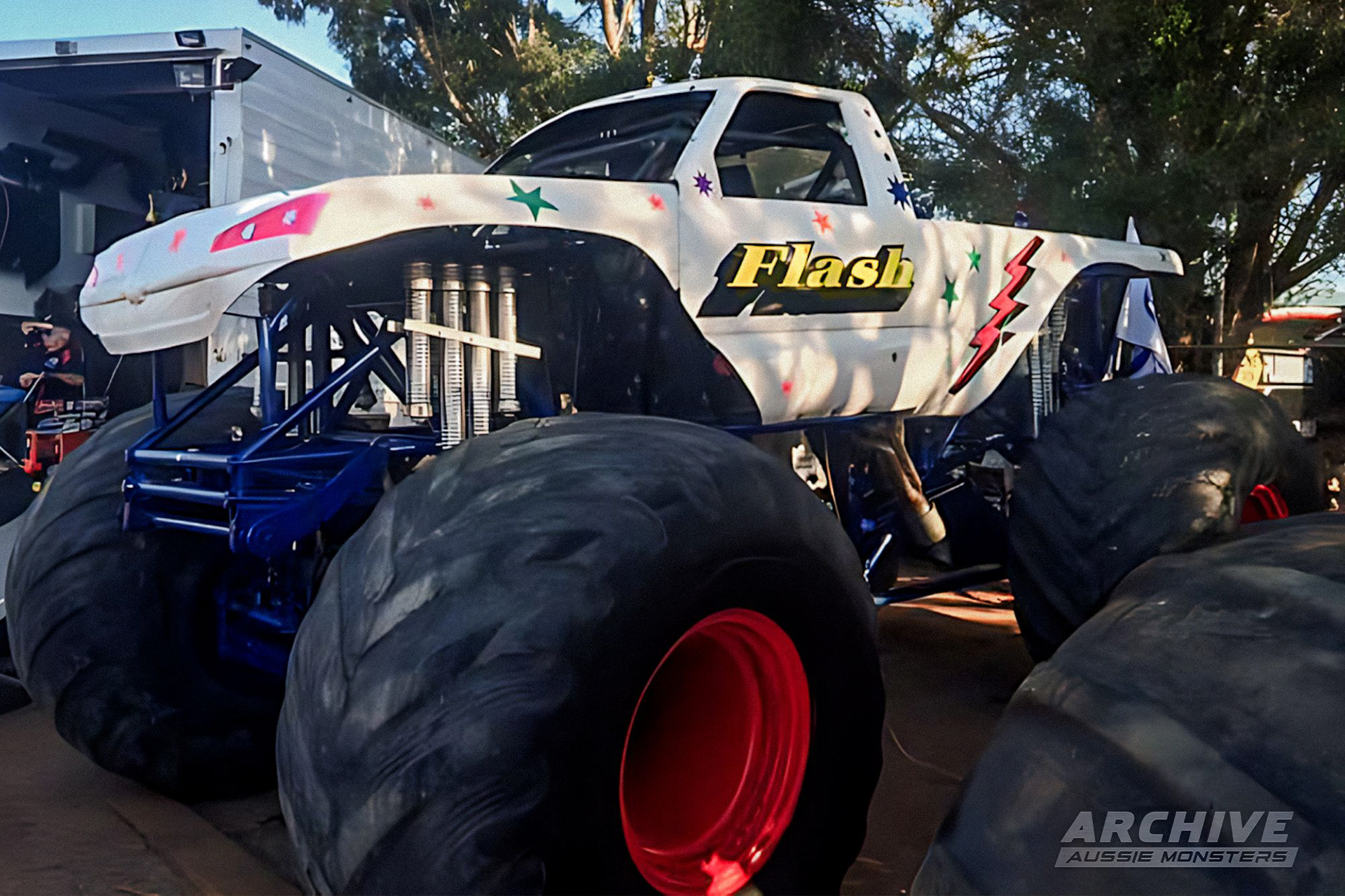 Flash was a short-lived identity that ran on the original Crusty Demons chassis (see right image, farthest from the camera). It made its debut at Archerfield Speedway in October of 2014 and ran intermittently before later being converted into Lil' Miss Thunda.