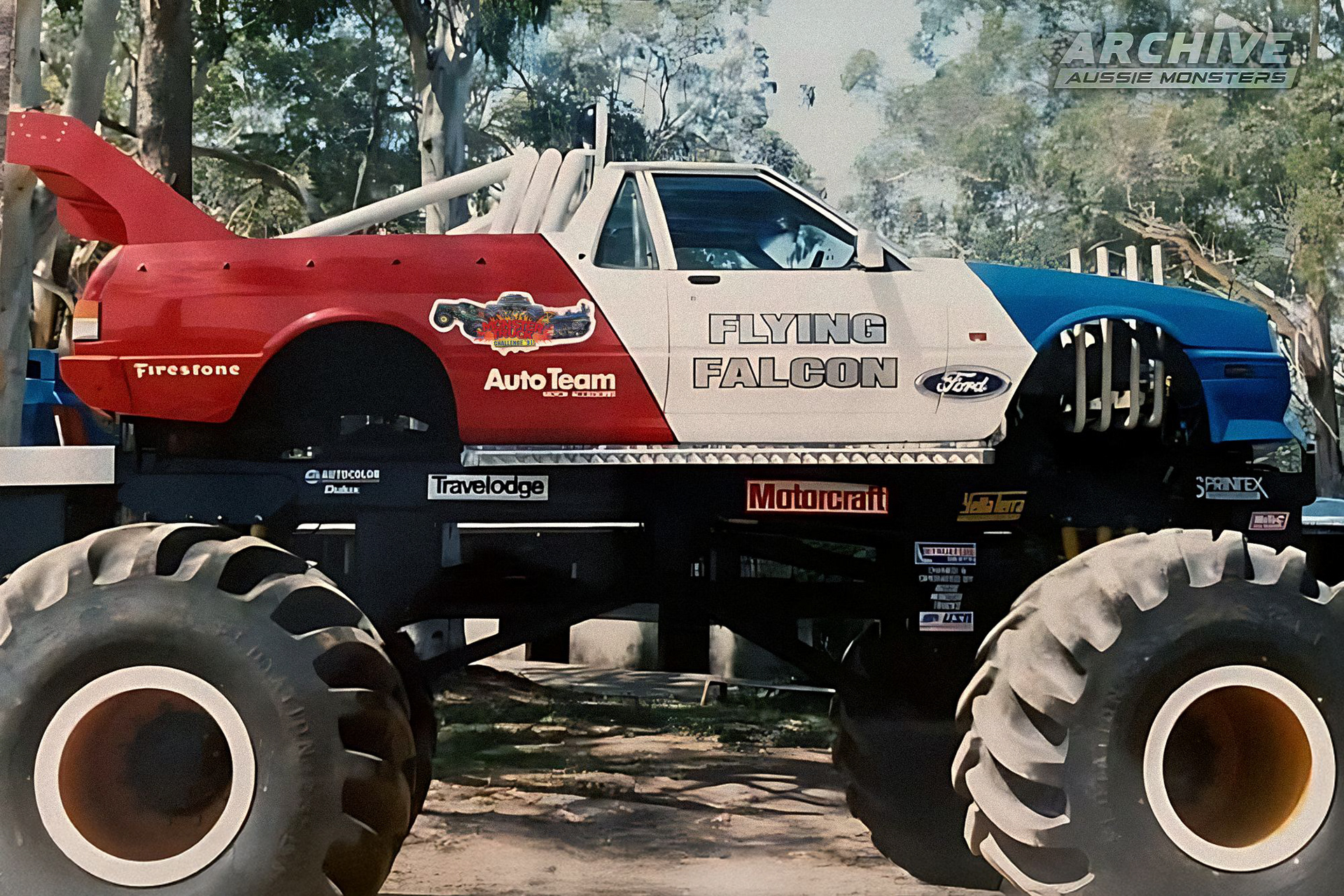 The Flying Falcon initially started as the Aussie Battler, and after five years of operation (under Mulligan and Reily's ownership, respectively), Mulligan felt the truck was unable to perform to the level he wanted. In mid-July 1991, the truck received an extensive overhaul at the hands of Ed Mulligan himself and the team at Auto Crew in Sydney. Within a month, the new identity was completed.