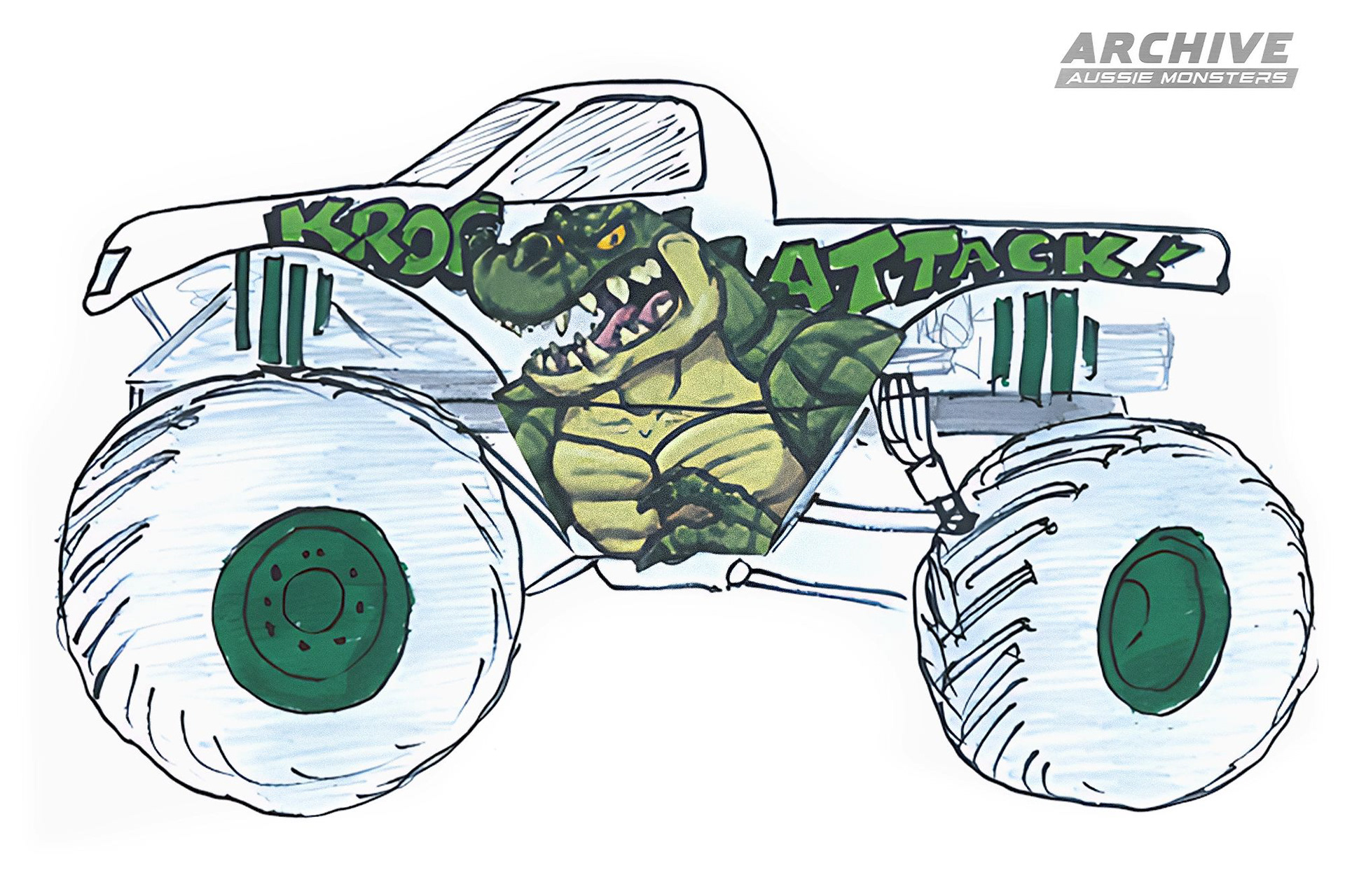 Kroc Attack was a proposed identity that was intended to run on the Crusty Demons chassis. The design was shared by Monster Truck Promotions Australia on May 4th, 2014 and was planned to debut on May 31st at the Big Pineapple. The identity was replaced with White Knight just fifteen days after its announcement.
