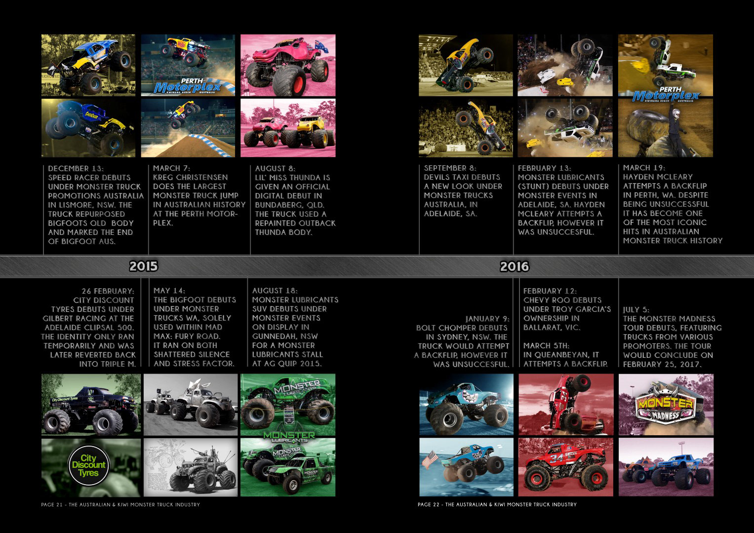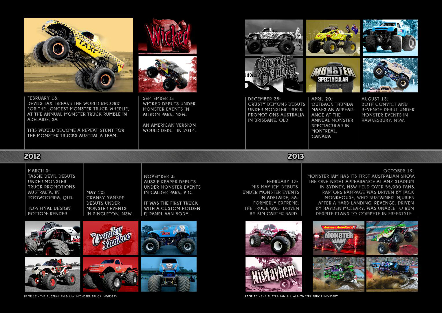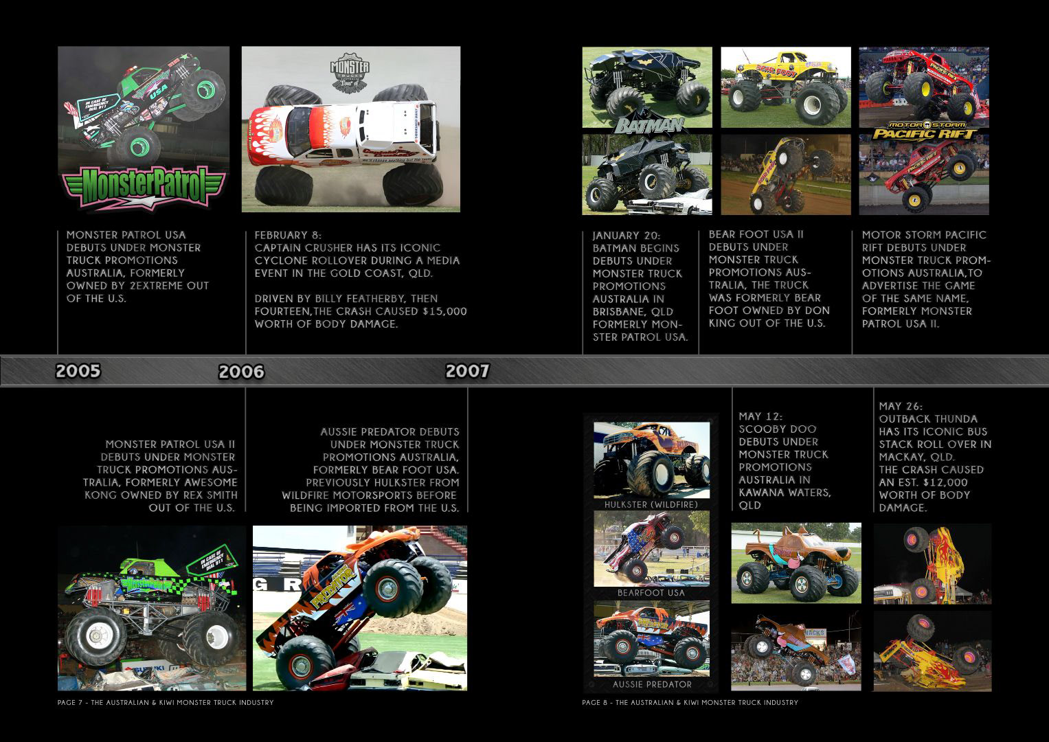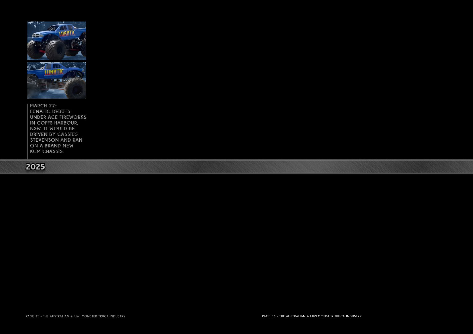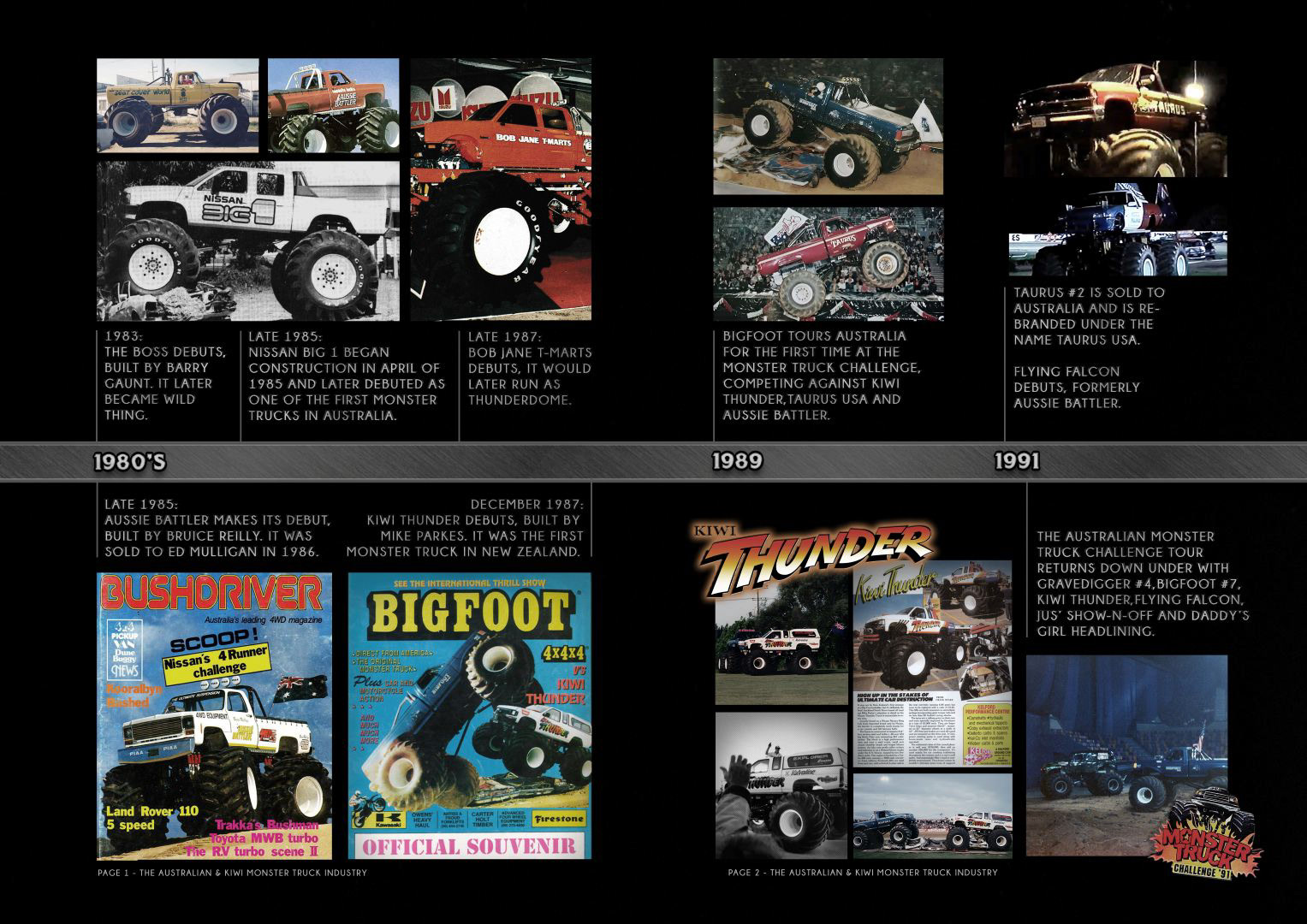 The Australian Monster Truck industry Timeline was developed by Jack McArdle in 2024 and will be updated at the end of each year. We want to extend a huge thank you to all who assisted in verifying information or provided photos for the timeline.